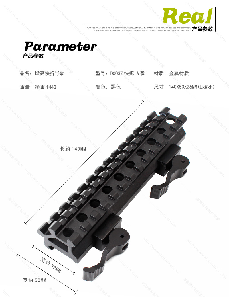 特點:增高導軌,斜導軌,快拆功能