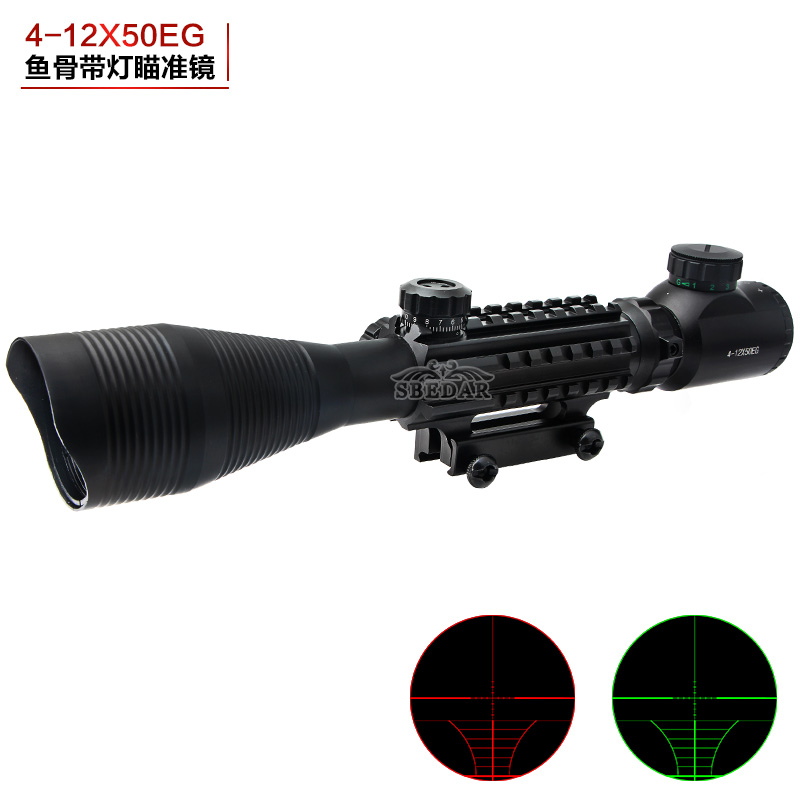 4-12X50EG紅綠光導軌魚骨狙擊十線瞄準鏡