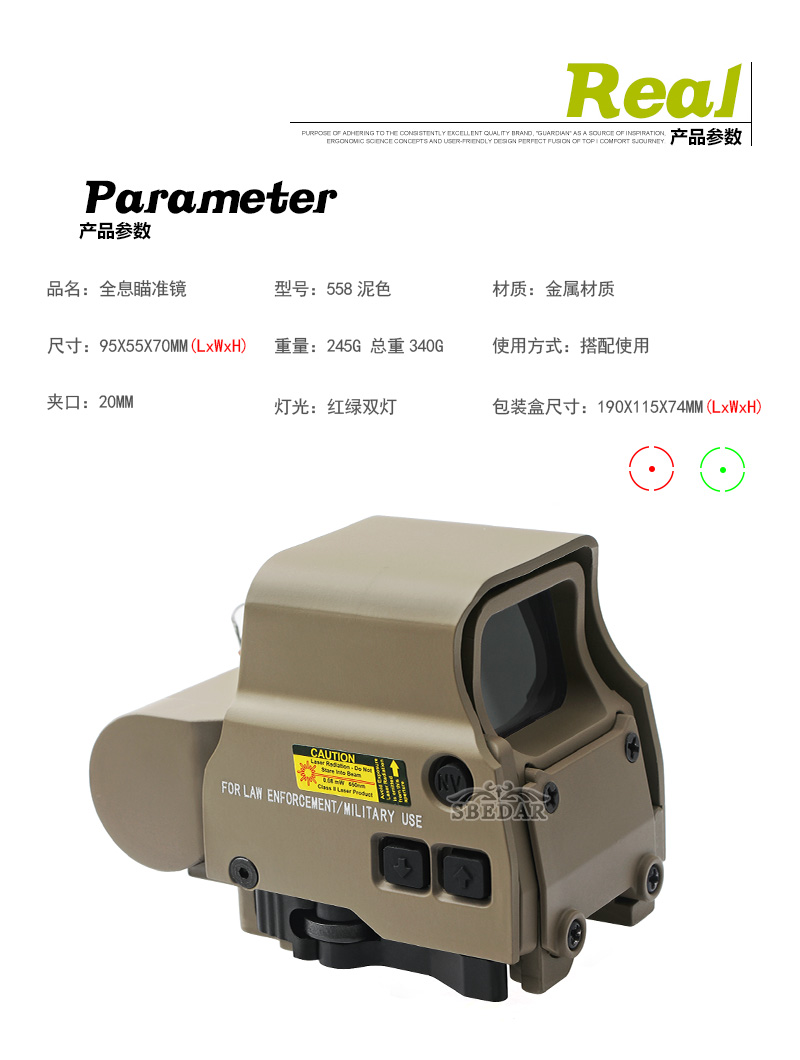 泥色558快拆全息瞄準20mm卡槽狙擊隱形瞄準鏡