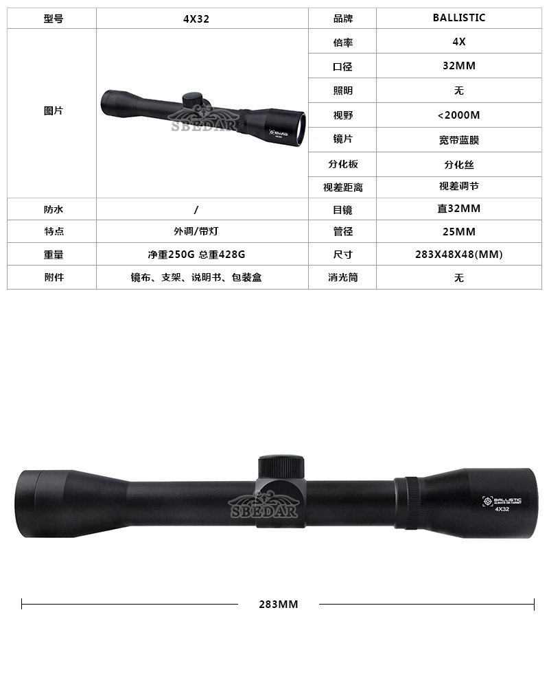 跨境熱賣4x32長款高清高倍抗震狙擊瞄準鏡