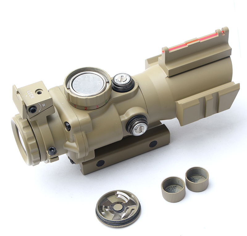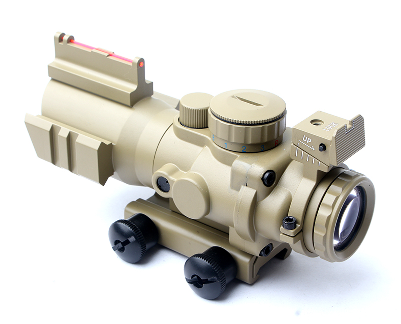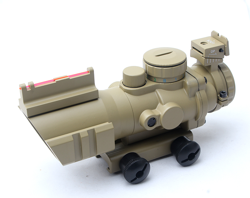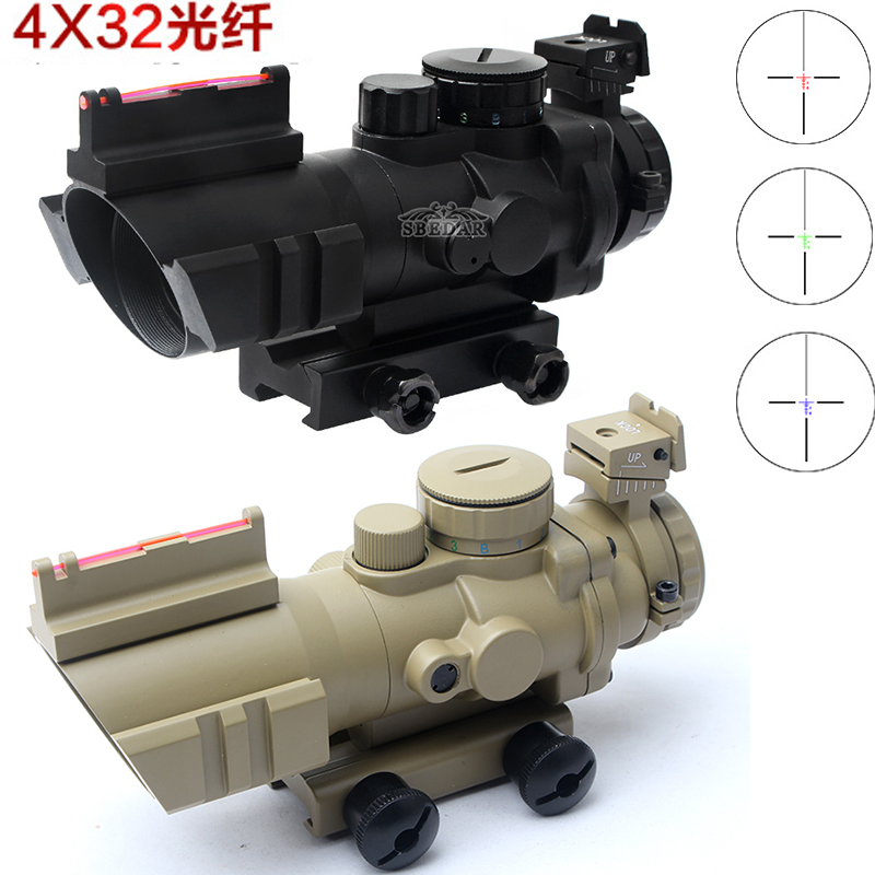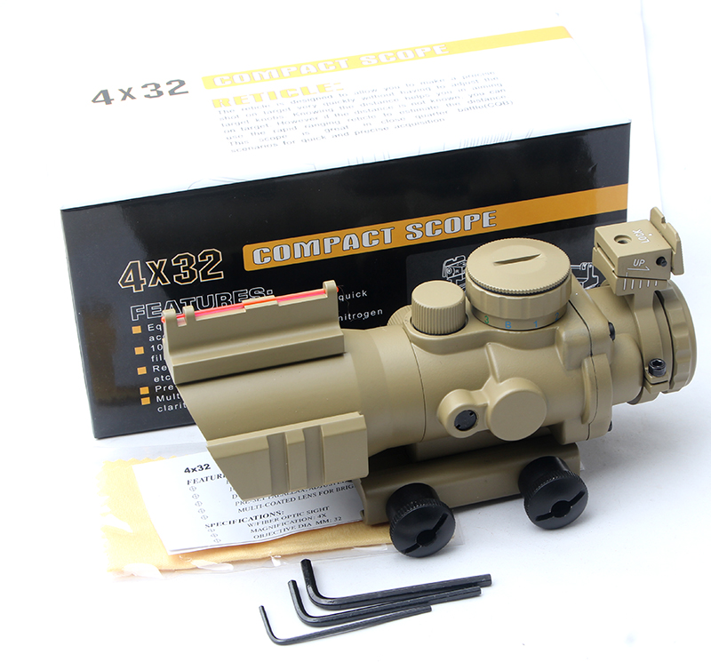 4x32 光纖導軌分劃板抗震瞄準鏡彩盒 小海螺沙色