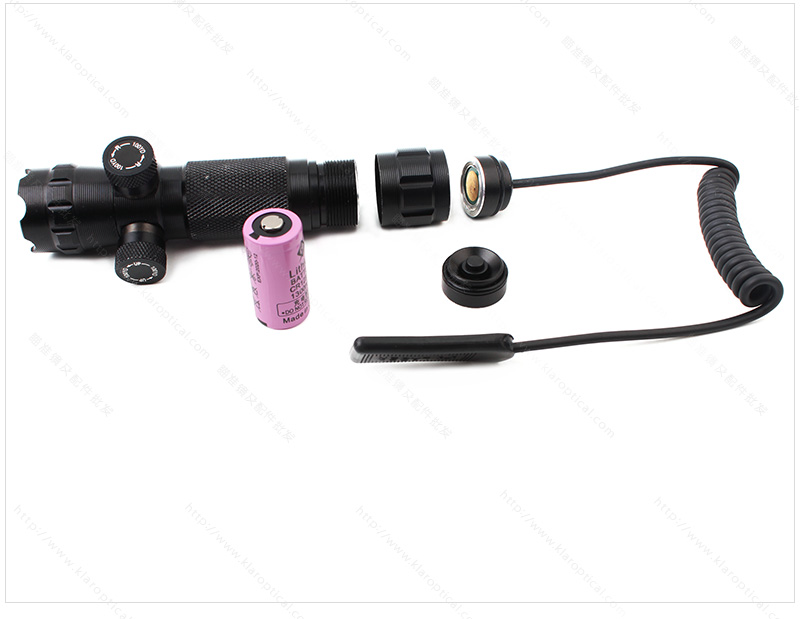 【包含】:夾具、CR123鋰電池1枚、控制開(kāi)關(guān)、黑色硬盒包裝、2內(nèi)六角扳手和鐳射發(fā)射器本體。